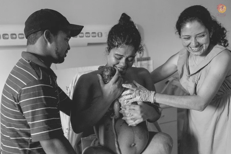 E no trabalho de parto, quando chega o filho,