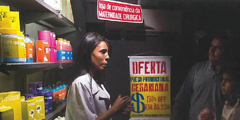 É cercada de produtos vendidos como indispensáveis. É levada a pensar que o melhor cuidado com o nascimento de seu filho está relacionado a consumir esses produtos e serviços. A “Loja de Conveniência da Maternidade Cirúrgica” é uma caricatura dessas ofertas. Os produtos – dispostos em prateleiras como num supermercado – são inspirados em produtos reais, e alguns parecem irresistíveis. As mensagens são levadas ao extremo sob uma perspectiva propositadamente bem humorada, para provocar reflexão.